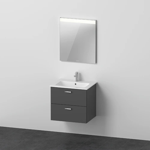 Duravit Xbase, Möbel-Set wandhängend, mit LED-Spiegel, Waschtisch und Waschtischunterschrank, Breite 600 mm
