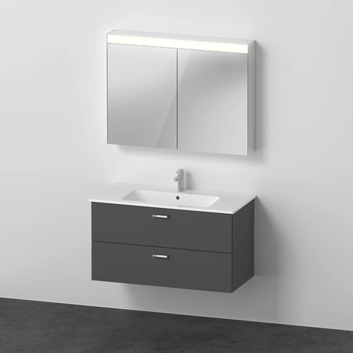 Duravit Xbase, Möbel-Set wandhängend, mit LED-Spiegelschrank, Waschtisch und Waschtischunterschrank, Breite 1000 mm