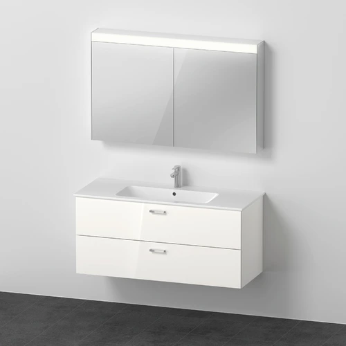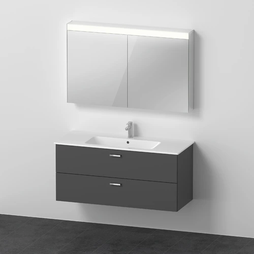 Duravit Xbase, Möbel-Set wandhängend, mit LED-Spiegelschrank, Waschtisch und Waschtischunterschrank, Breite 1200 mm