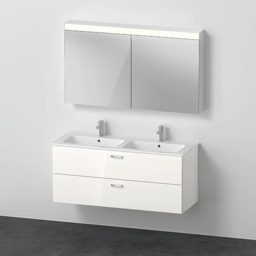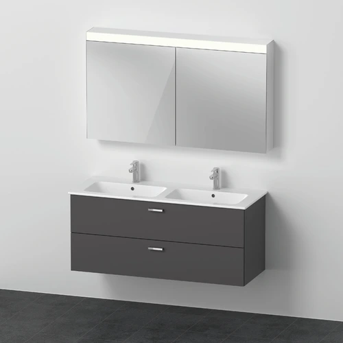 Duravit Xbase, Möbel-Set wandhängend, mit LED-Spiegelschrank, Waschtisch und Waschtischunterschrank, Breite 1270 mm
