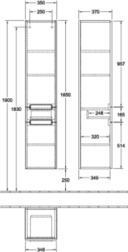 Villeroy & Boch Subway 2.0 Hochschrank, 2 Türen und 1 Schublade, Anschlag rechts, 350x1650x370mm