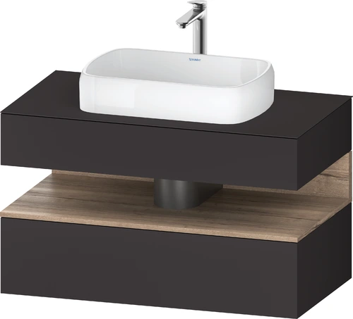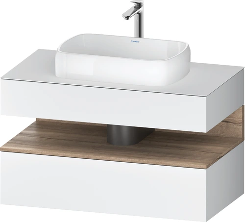 Duravit Qatego Konsolenwaschtischunterbau, 1 Auszug, 1 Schubkasten, Ausschnitt mittig, 1000x550x600mm, Nische Eiche Mamoriert