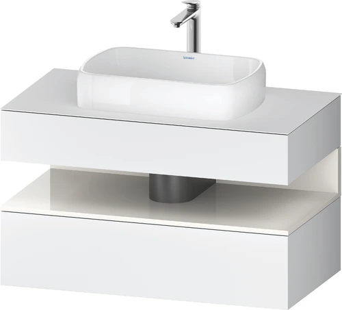Duravit Qatego Konsolenwaschtischunterbau, 1 Auszug, 1 Schubkasten, Ausschnitt mittig, 1000x550x600mm, Nische Weiß Hochglanz