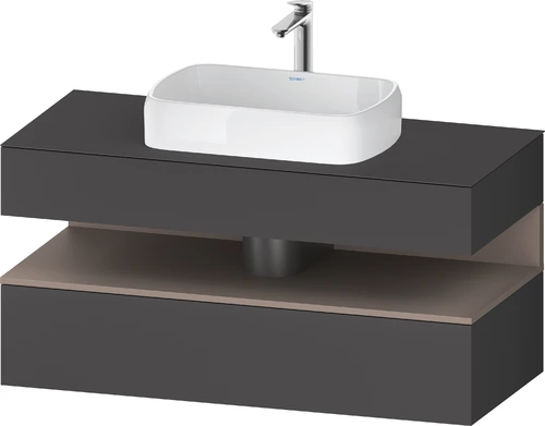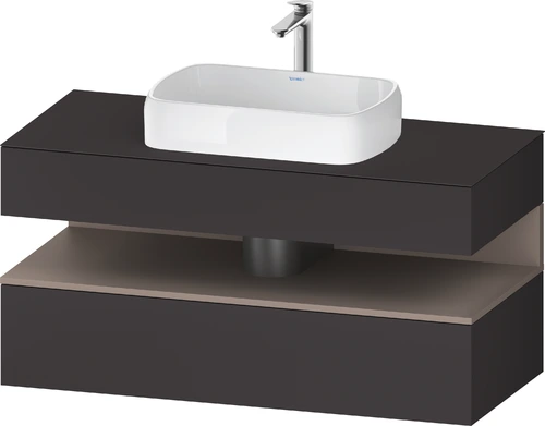 Duravit Qatego Konsolenwaschtischunterbau, 1 Auszug, 1 Schubkasten, Ausschnitt mittig, 1200x550x600mm, Nische Basalt Matt