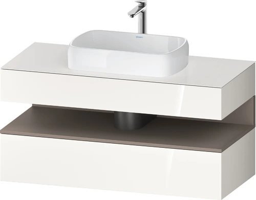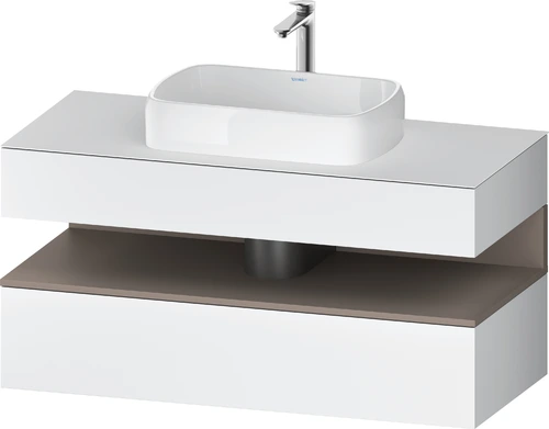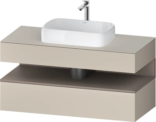 Duravit Qatego Konsolenwaschtischunterbau, 1 Auszug, 1 Schubkasten, Ausschnitt mittig, 1200x550x600mm, Nische Basalt Matt