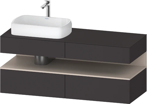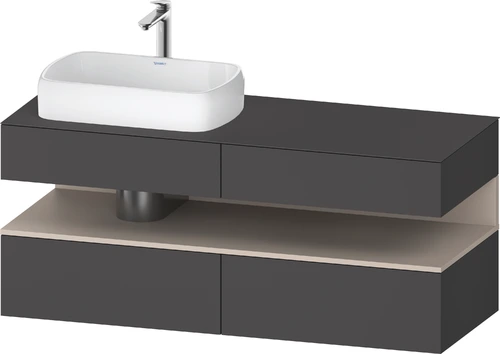 Duravit Qatego Konsolenwaschtischunterbau, 2 Auszüge, 2 Schubkästen, Ausschnitt links, 1400x550x600mm, Nische Taupe Matt