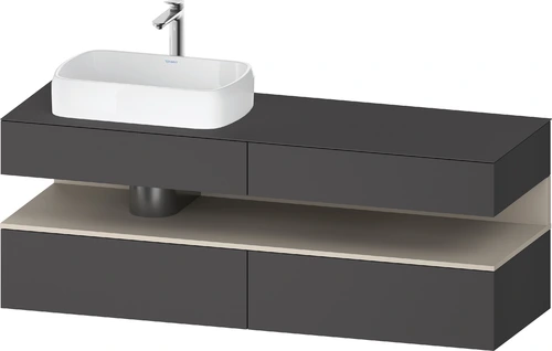 Duravit Qatego Konsolenwaschtischunterbau, 2 Auszüge, 2 Schubkästen, Ausschnitt links, 1600x550x600mm, Nische Taupe Supermatt