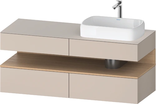 Duravit Qatego Konsolenwaschtischunterbau, 2 Auszüge, 2 Schubkästen, Ausschnitt rechts, 1400x550x600mm, Nische Eiche Natur