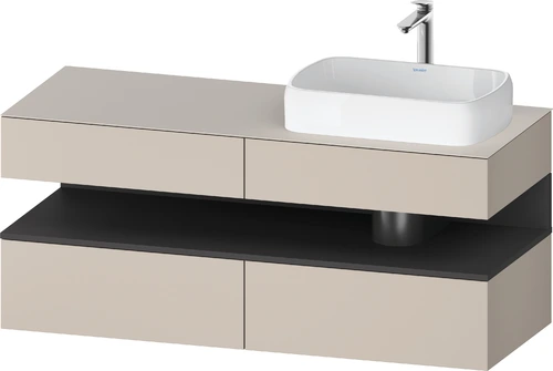 Duravit Qatego Konsolenwaschtischunterbau, 2 Auszüge, 2 Schubkästen, Ausschnitt rechts, 1400x550x600mm, Nische Graphit Matt
