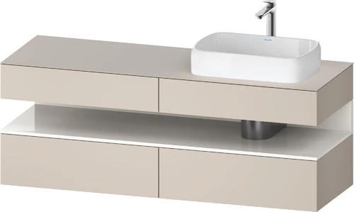 Duravit Qatego Konsolenwaschtischunterbau, 2 Auszüge, 2 Schubkästen, Ausschnitt rechts, 1600x550x600mm, Nische Weiß Hochglanz