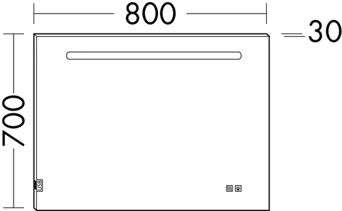 burgbad Eqio Leuchtspiegel mit LED-Beleuchtung, 1 Sensorschalter, Handyhalter, 800x30x700mm