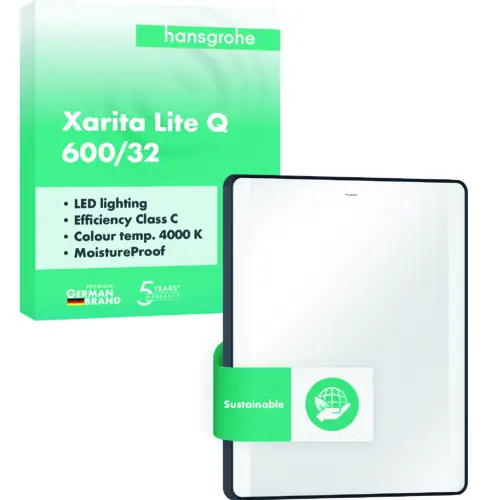 hansgrohe Xarita Lite Q Spiegel, seitliche LED-Belechtung, 600x30x700mm, Wandschalter