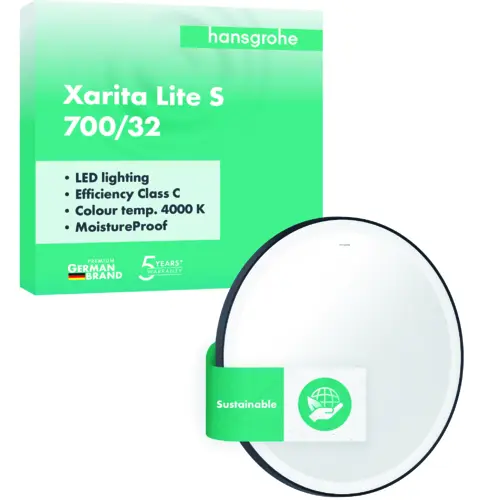 hansgrohe Xarita Lite S Spiegel, runde LED-Beleuchtung, 700x30x700mm, Wandschalter