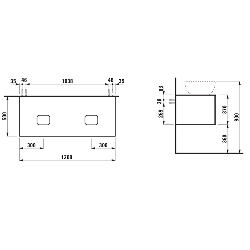 - Breite: 1200 mm, Tiefe: 500 mm, Höhe: 370 mm