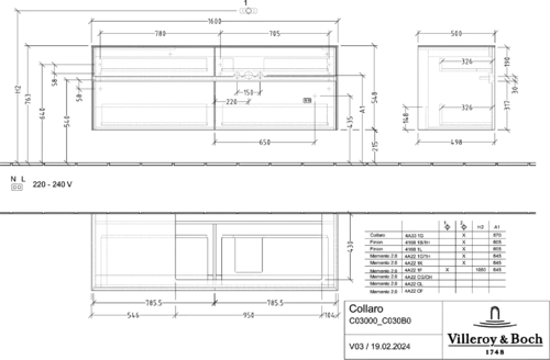 Villeroy & Boch Collaro Waschbeckenunterschrank, Waschbecken rechts, 4 Auszüge, Wandhängend, mit Beleuchtung, 1600x548x500mm