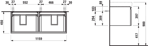 LAUFEN PRO S Waschtischunterschrank, 2 Schublade und Innenschubladen, zu Waschtisch H814966, 1160x450x395mm