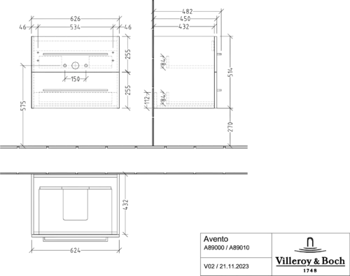 Villeroy & Boch Avento Waschtischunterschrank, 2 Auszüge, 630x514x484mm, Griff Chrome Glanz