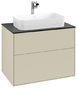 Villeroy & Boch Finion Waschtischunterschrank, 2 Auszüge, Waschbecken mittig, mit Hahnloch, 800x603x501mm, Glass Black Matt