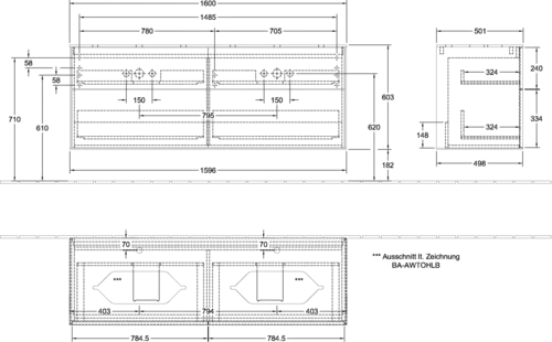 - Maße: 1600 x 603 x 501 mm