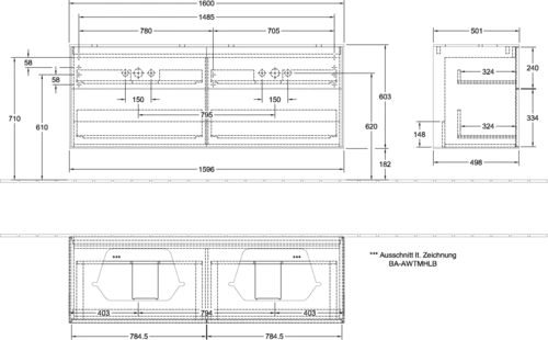 - Maße: 1600 x 603 x 501 mm