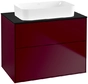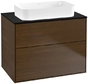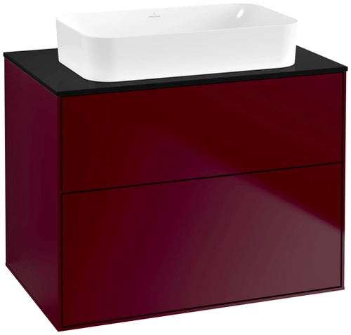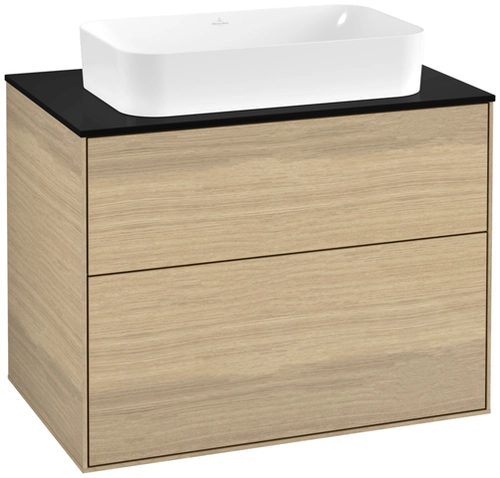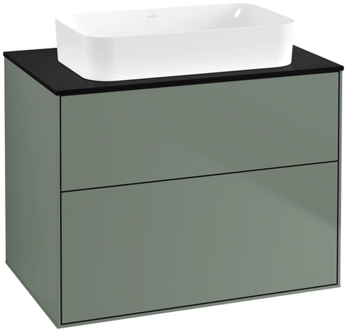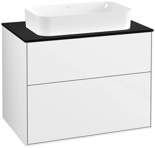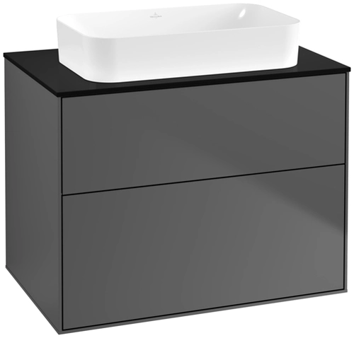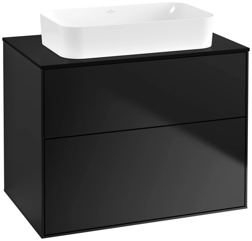Villeroy & Boch Finion Waschtischunterschrank, 2 Auszüge, mit integrierter Beleuchtung, Waschbecken mittig, ohne Hahnloch, 800x603x501mm, Glass Black Matt