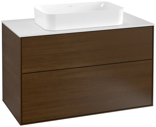 Villeroy & Boch Finion Waschtischunterschrank, 2 Auszüge, mit Beleuchtung, Waschbecken mittig, mit Hahnloch, 1000x603x501mm, Glass White Matt