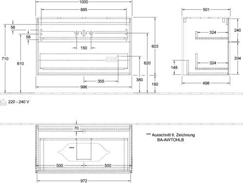 - Maße: 1000 x 603 x 501 mm