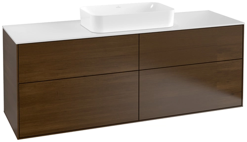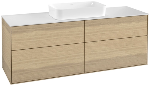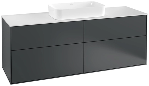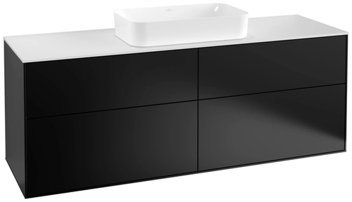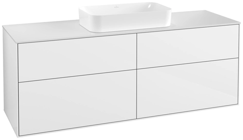 Villeroy & Boch Finion Waschtischunterschrank, 4 Auszüge, mit integrierter Beleuchtung, mit Hahnloch, 1600x603x501mm, Glass White Matt