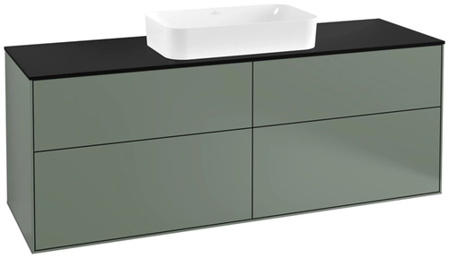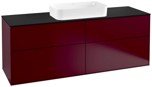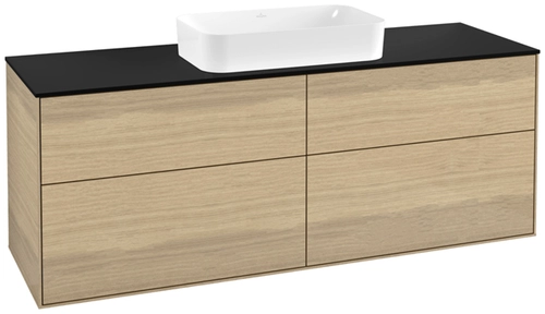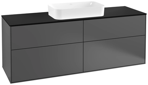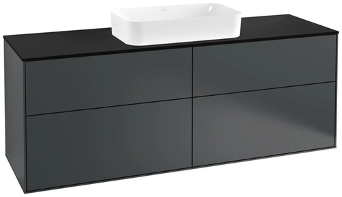 Villeroy & Boch Finion Waschtischunterschrank, 4 Auszüge, mit integrierter Beleuchtung, mit Hahnloch, 1600x603x501mm, Glass Black Matt