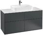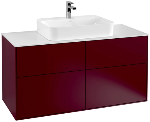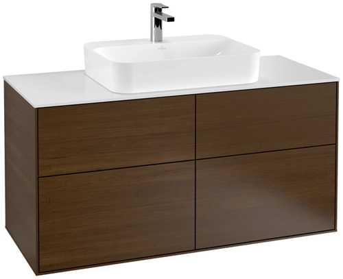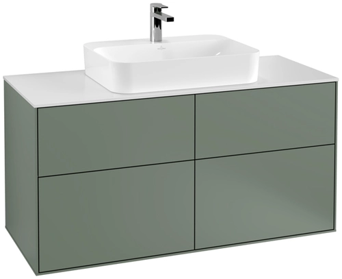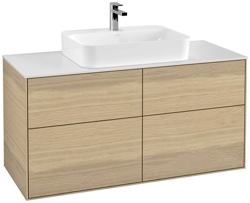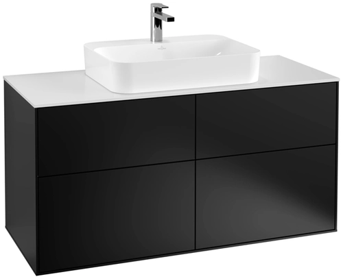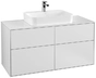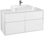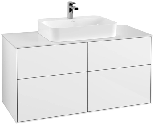 Villeroy & Boch Finion Waschtischunterschrank, 4 Auszüge, mit integrierter Beleuchtung, Waschbecken mittig, 1200x603x501mm, Glass White Matt