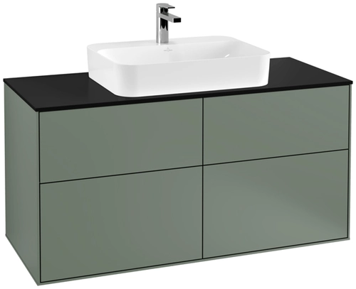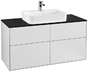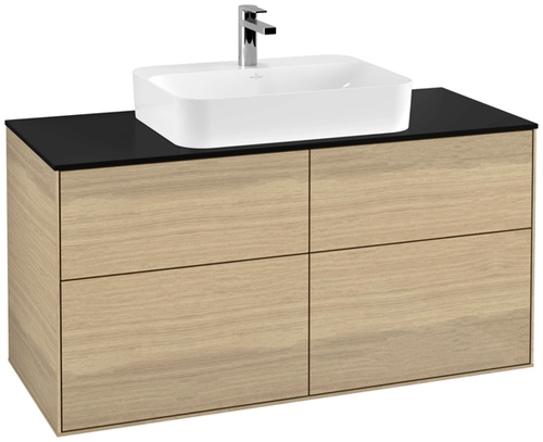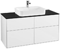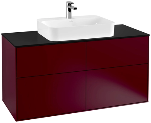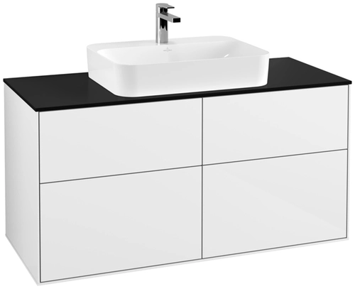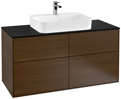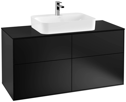 Villeroy & Boch Finion Waschtischunterschrank, 4 Auszüge, mit integrierter Beleuchtung, Waschbecken mittig, 1200x603x501mm, Glass Black Matt