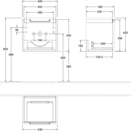 Villeroy & Boch Subway 2.0 Waschtischunterschrank, 1 Auszug, Waschbecken mittig, 440x420x352mm
