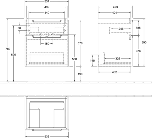 - Maße: 537 x 590 x 423 mm