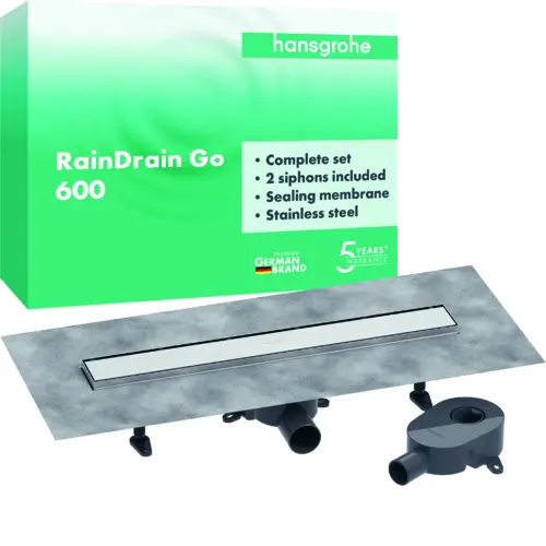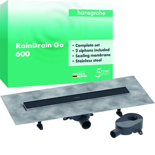 hansgrohe RainDrain Go Komplettset Duschrinne 600, rückseitig befließbar, für Standard-/flache Installation