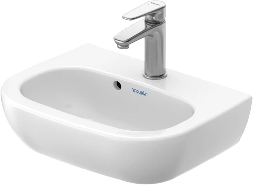 Duravit D-Code wash hand basin, with tap hole, with overflow, 450x340x145mm, white high gloss