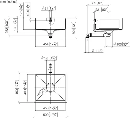 Dornbracht single basin, 450x400mm, glazed steel