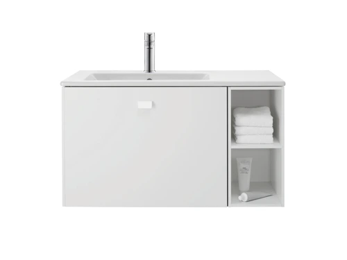 Duravit ME by Starck vanity unit, with overflow, 1 tap hole, with tap hole bench, asymmetrical, basin left-hand, 830mm
