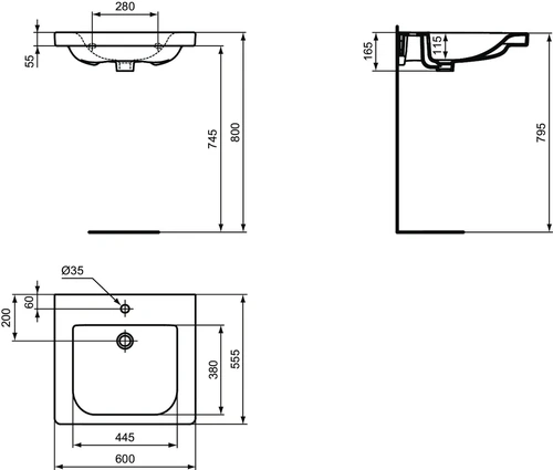 - 600 x 555 x 165 mm