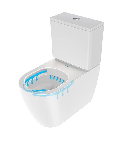 - Duravit Rimless®: open flushing rim with dynamic water flow