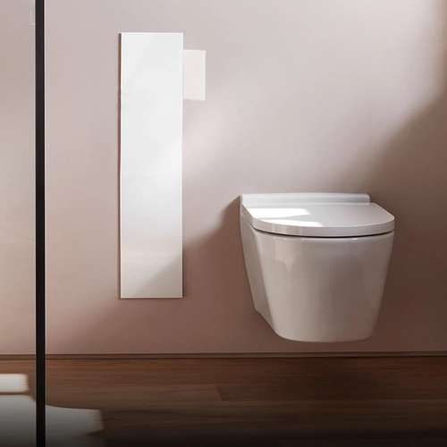 emco asis module pure WC module, flush-mounted, door hinge left, full-length glass front, 730x170mm, with spare roll compartment
