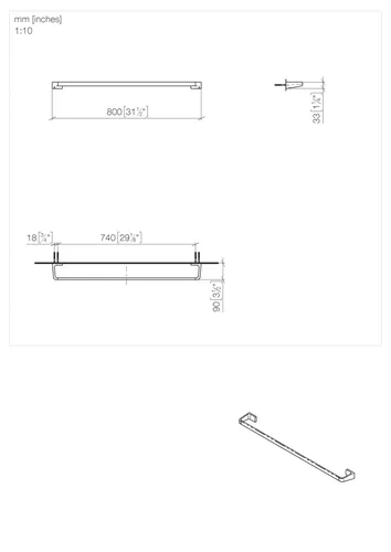 Dornbracht bath towel rail, 800mm, chrome