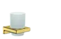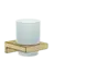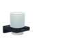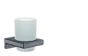 - Toothbrush tumbler made of glass with an overall height of 94 mm and a depth of 91 mm for wall mounting