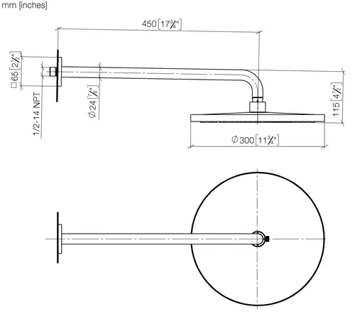 Dornbracht rain shower with wall connection, 450mm projection, Ø 300mm, flowReduce