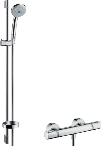 hansgrohe Croma 100 surface-mounted shower system Multi with Ecostat Comfort thermostat and shower bar 90 cm, chrome