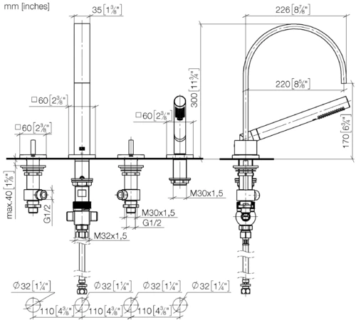 - Bore diameter of spouts 32 mm