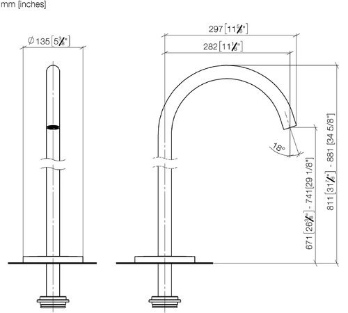 - Height to aerator 671 - 741 mm
