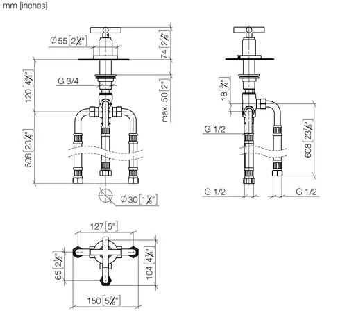 Dornbracht TARA two-way diverter for bath rim or tile rim installation, automatic bath/shower diverter