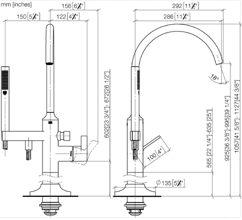 - Height to aerator 925 - 995 mm