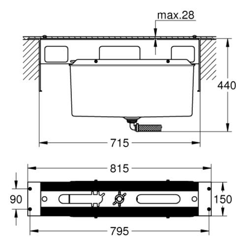 Grohe bath rim combination, substructure for tiled bench installation