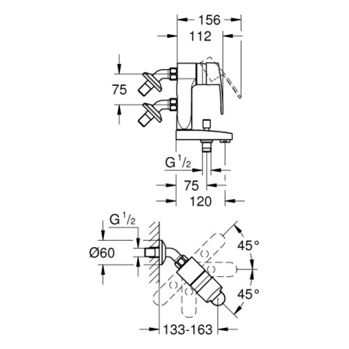 Grohe Eurostyle Cosmopolitan Vertica single-lever bath mixer, 120mm projection, wall-mounted